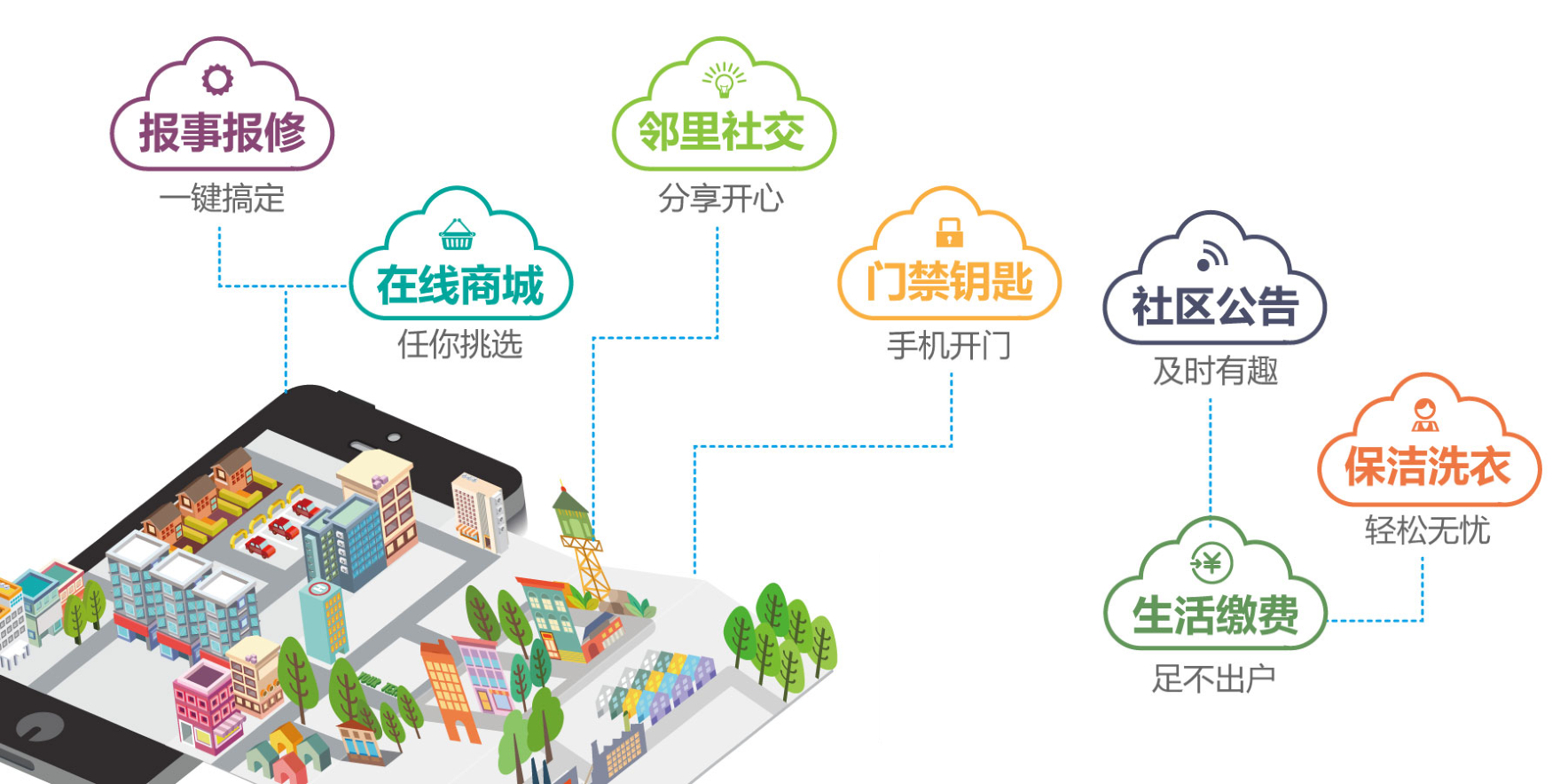 通過“平臺+硬件+運營”的軟硬件相結(jié)合理念,涵蓋到社區(qū)生活的方方面面,大到社區(qū)門禁、社區(qū)監(jiān)控、社區(qū)通訊等,小到家居設(shè)備、安全警報、居家醫(yī)療設(shè)備等,均可通過硬件設(shè)備將大數(shù)據(jù)收集傳輸備份至云端數(shù)據(jù)庫,通過平臺整合分析可在線監(jiān)控社區(qū)安全、接受社區(qū)需求、提供社區(qū)服務(wù)等,有效提高工作效率和業(yè)主滿意度。
